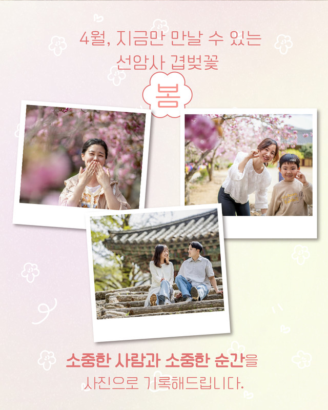 화사한 봄이 왔습니다. 봄꽃과 함께 가장 아름다운 순간을 기록하세요.
